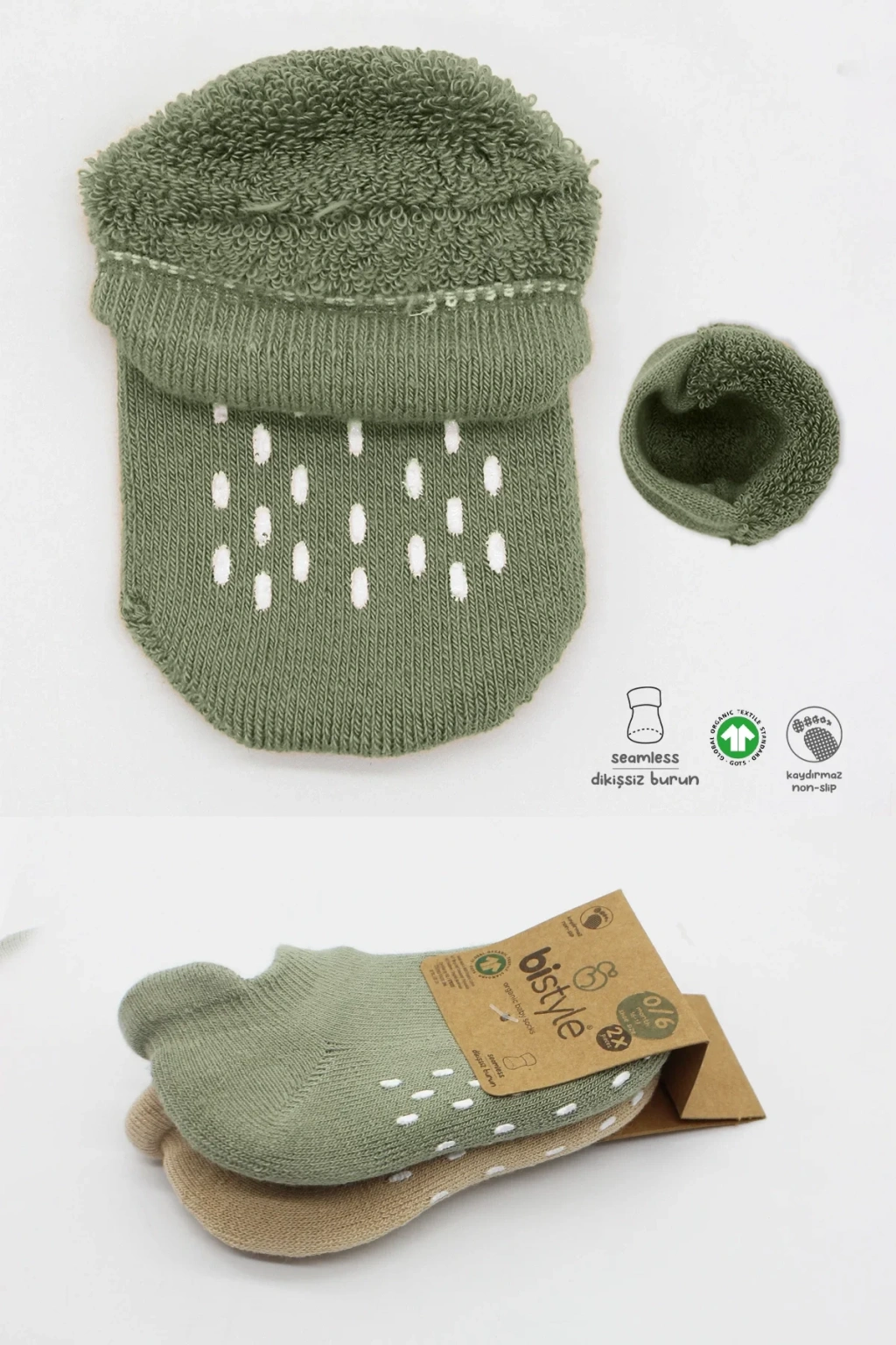 Bistyle 2'li Altı Havlu Sneakers Kaymaz Çorap 20501 Nil Bej