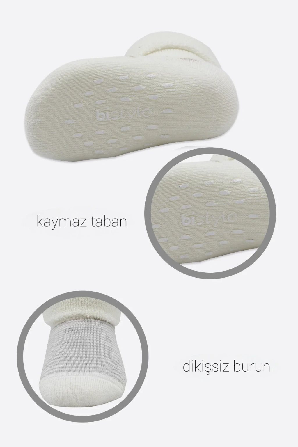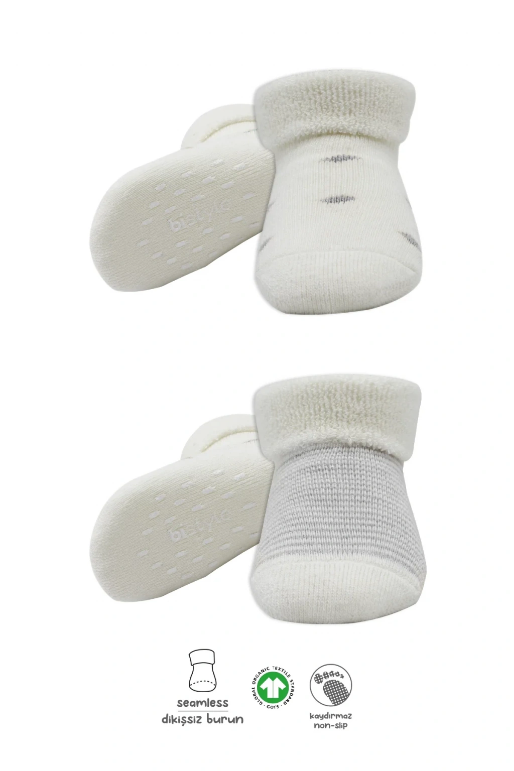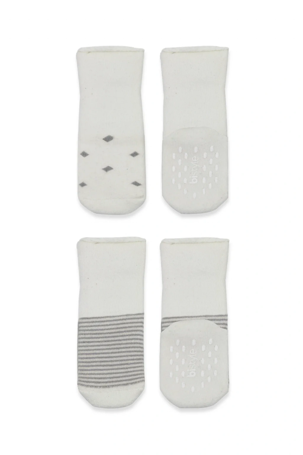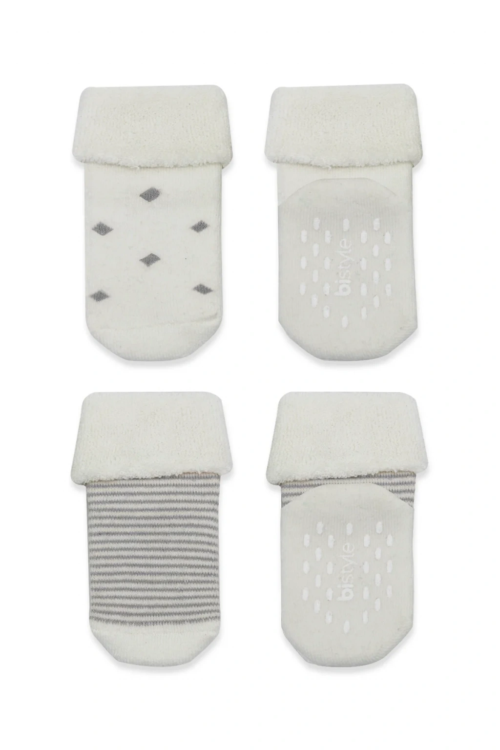 Bistyle 2'li Havlu Soket Kaymaz Çorap 10504 Gri Ekru