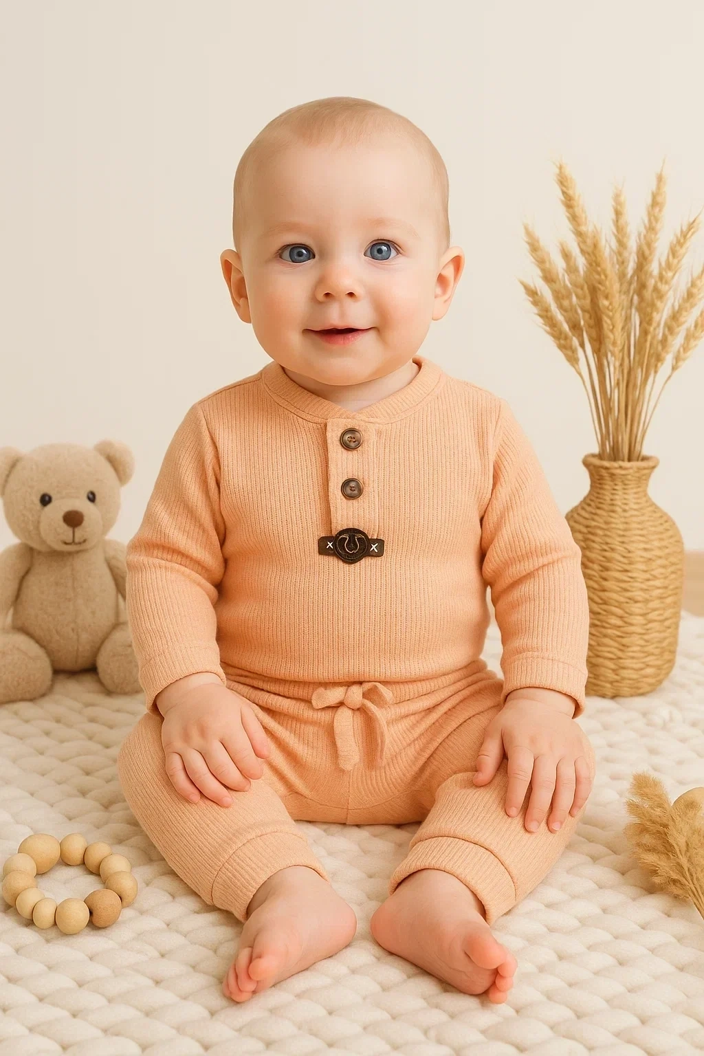 Waffle Çıtlı Düğmeli 2'li Mevsimlik Takım