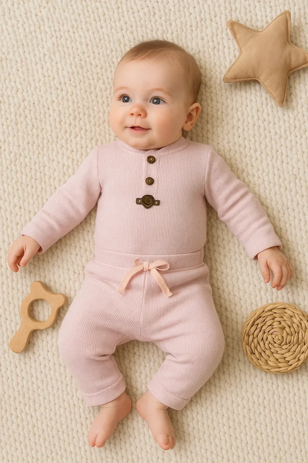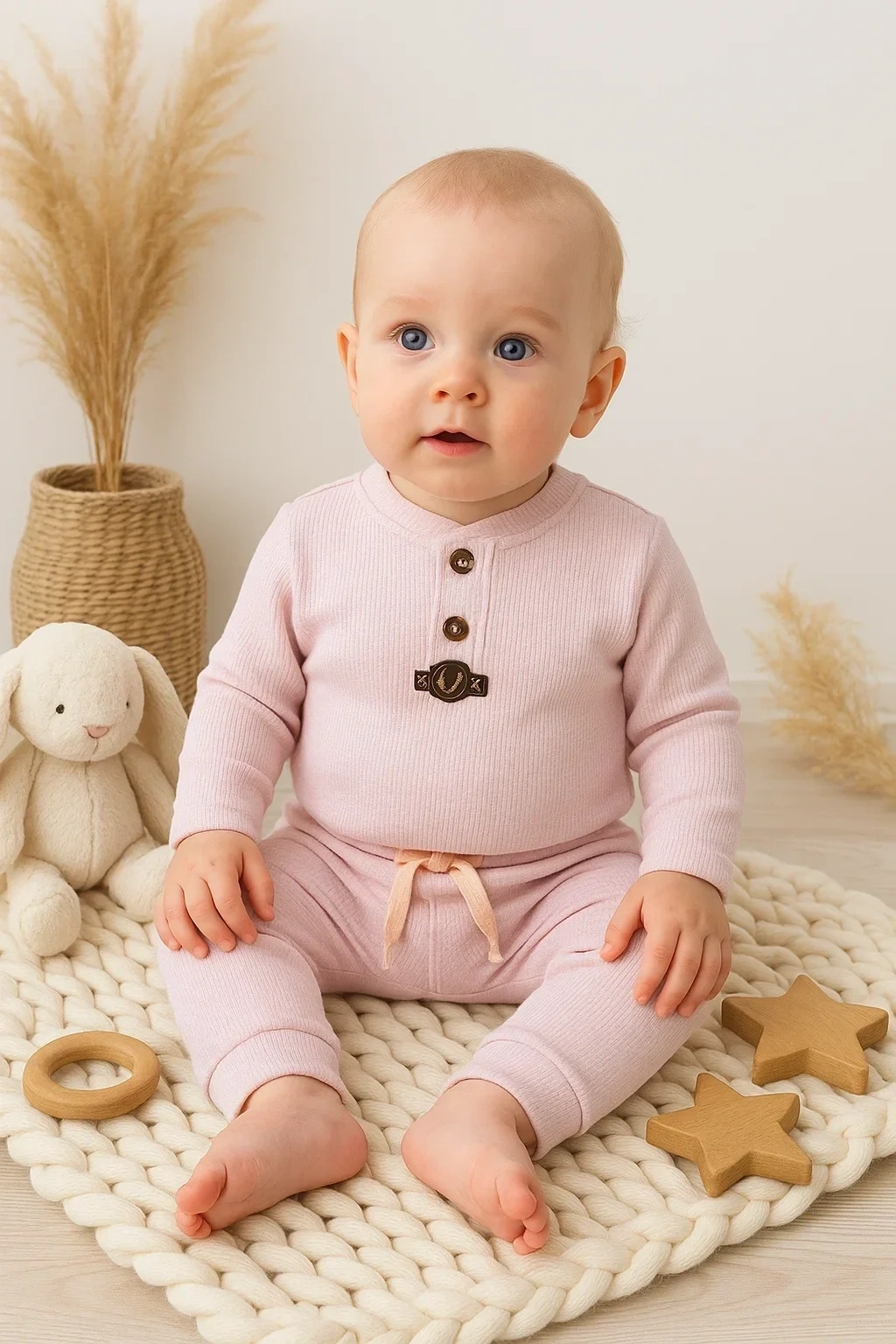 Waffle Çıtlı Düğmeli 2'li Mevsimlik Takım